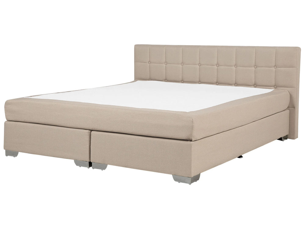 EU Super King Size Divan Bed Beige Fabric Upholstered 6ft Frame with Tufted Headboard and Mattress Beliani