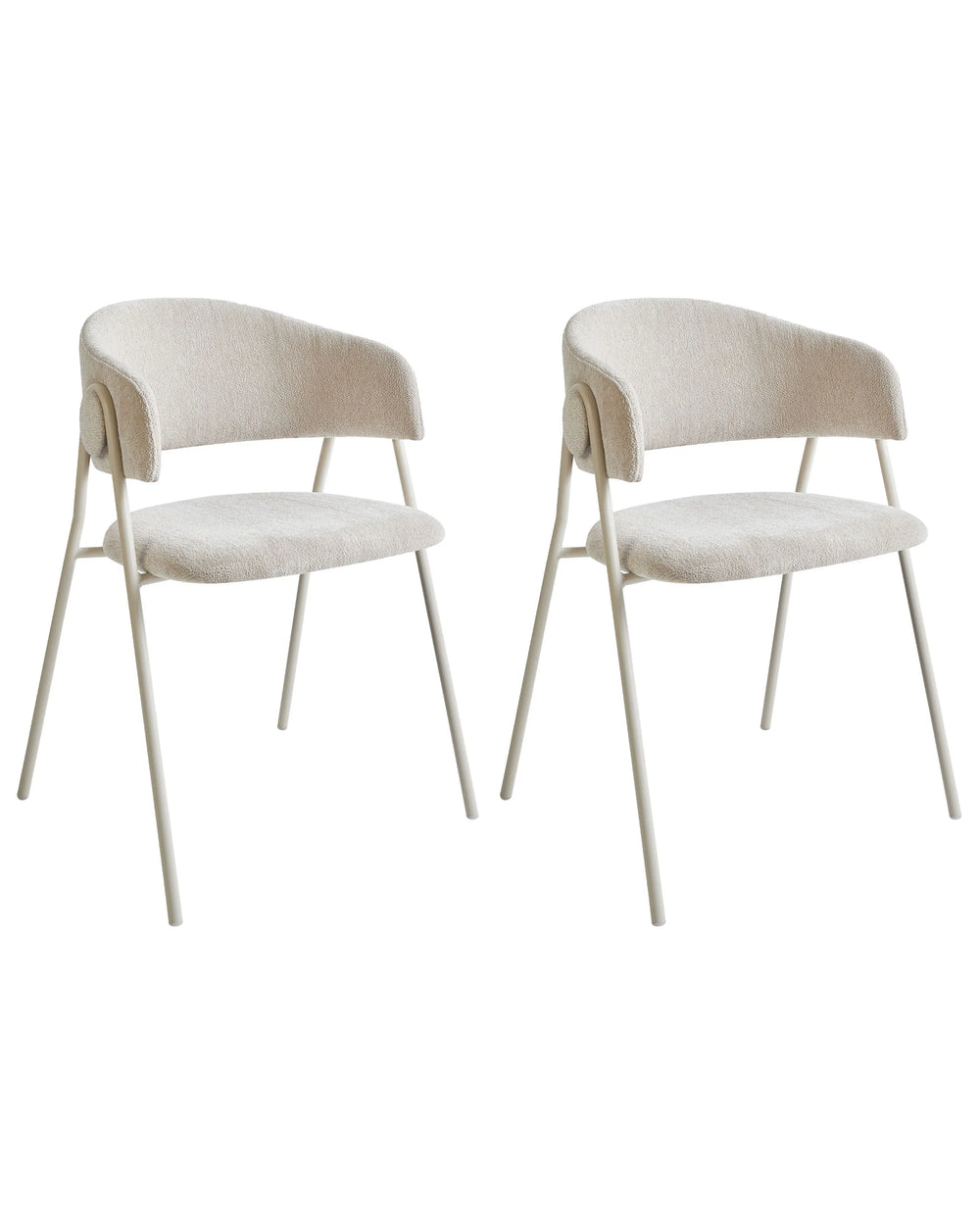 Set of 2 Dining Accent Chairs Light Beige Upholstery with Armrests Metal Base Modern Design Beliani