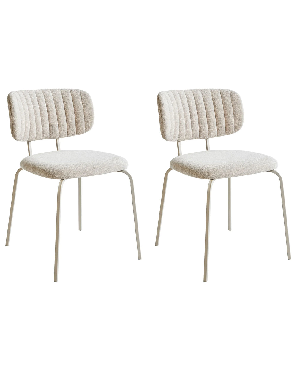 Set of 2 Dining Accent Chairs Light Beige Upholstery without Armrests Metal Base Modern Design Beliani