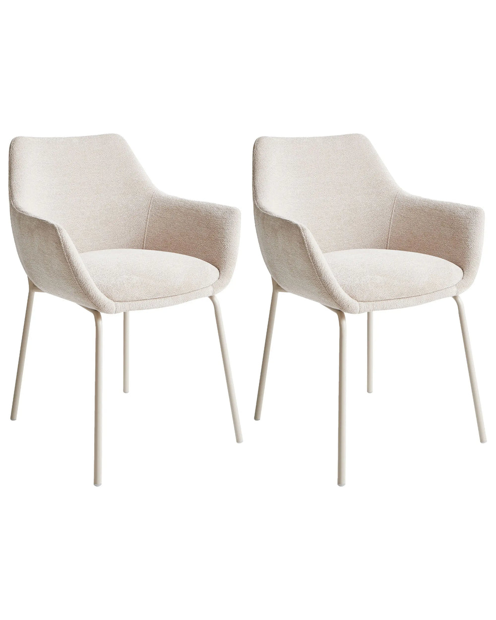 Set of 2 Dining Accent Chairs Light Beige Upholstery with Armrests Metal Base Modern Design Beliani