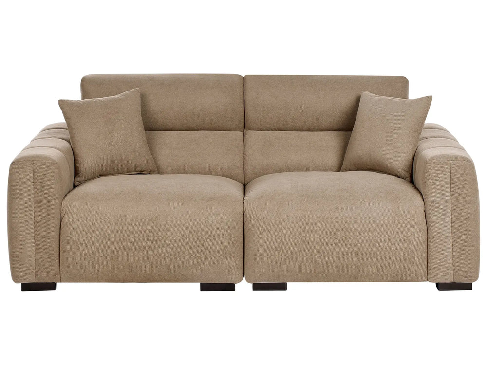 Modern Light Brown 3-Seater Fabric Sofa with Cushions Water-Resistant Upholstery Plushy Look Beliani is backordered and will ship as soon as it is back in stock.
