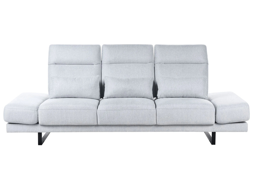 3 Seater Sofa Light Grey Polyester Upholstery Steel Legs Adjustable Armrests and Backrest Living Room Furniture Beliani