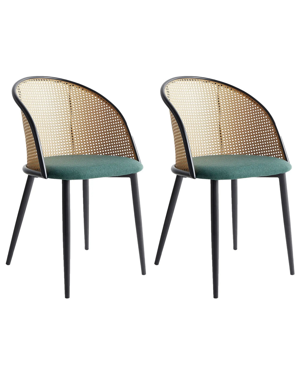 Set of 2 Accent Dining Chairs Black Metal Effect Frame Green Fabric Seat Viennese Braid Backrest Retro Seating Beliani is backordered and will ship as soon as it is back in stock.