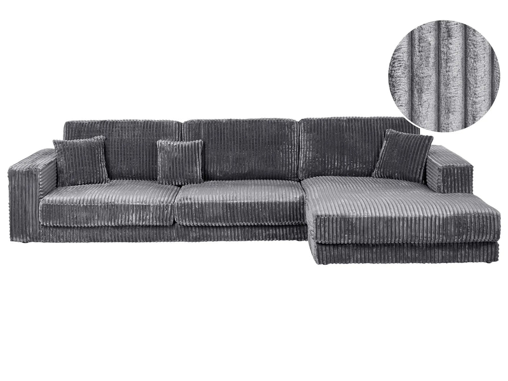 Left Hand 4 Seater Corner Sofa Dark Grey Jumbo Corduroy Upholstered Track Armrests Additional Cushions Minimalistic Modern Style Beliani