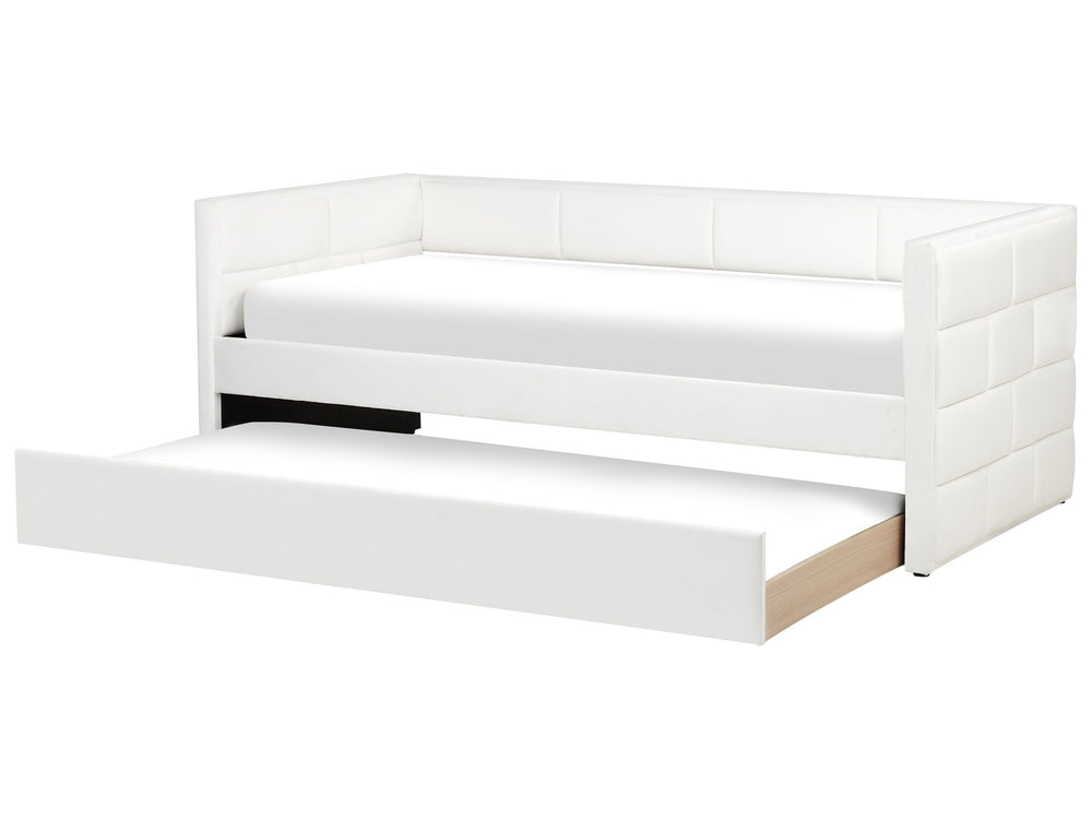 Trundle Bed Frame Off-White Velvet EU Velvet Single Size 3ft Slatted Frame Tufted Glam Beliani