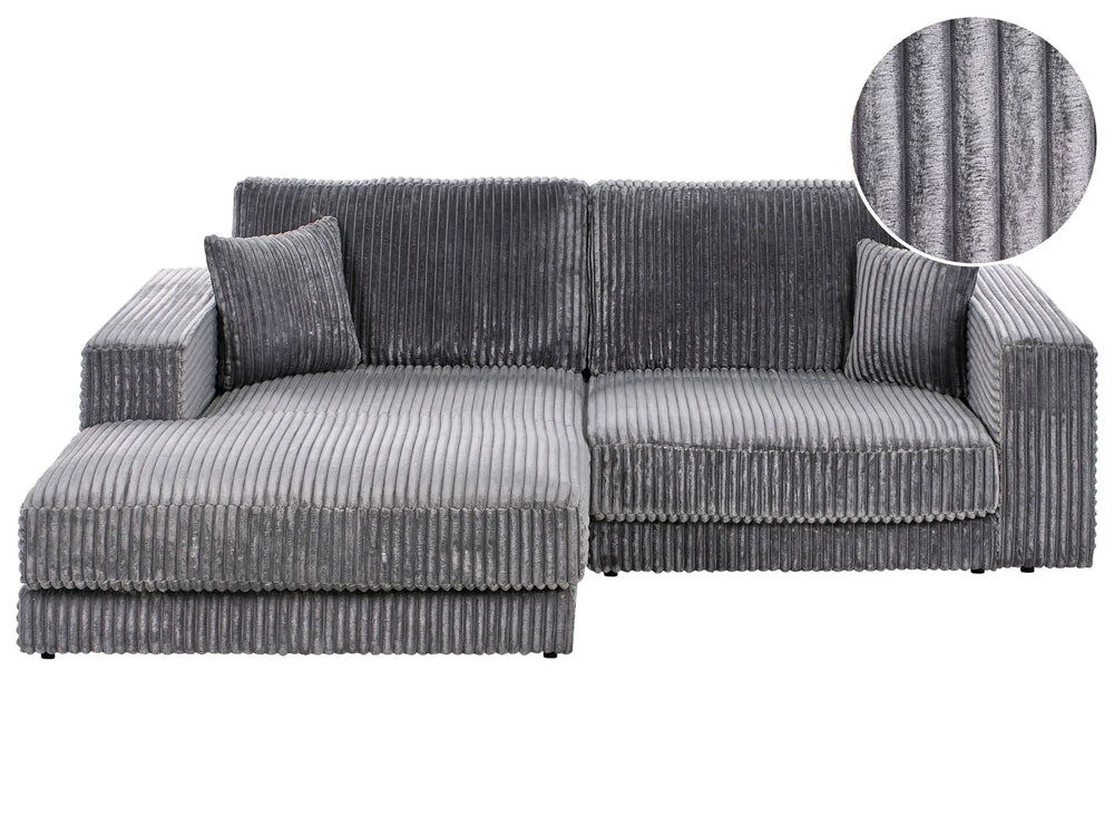 Right Hand 3 Seater Corner Sofa Grey Corduroy Upholstered Track Armrests Additional Cushions Minimalistic Modern Style Beliani is backordered and will ship as soon as it is back in stock.
