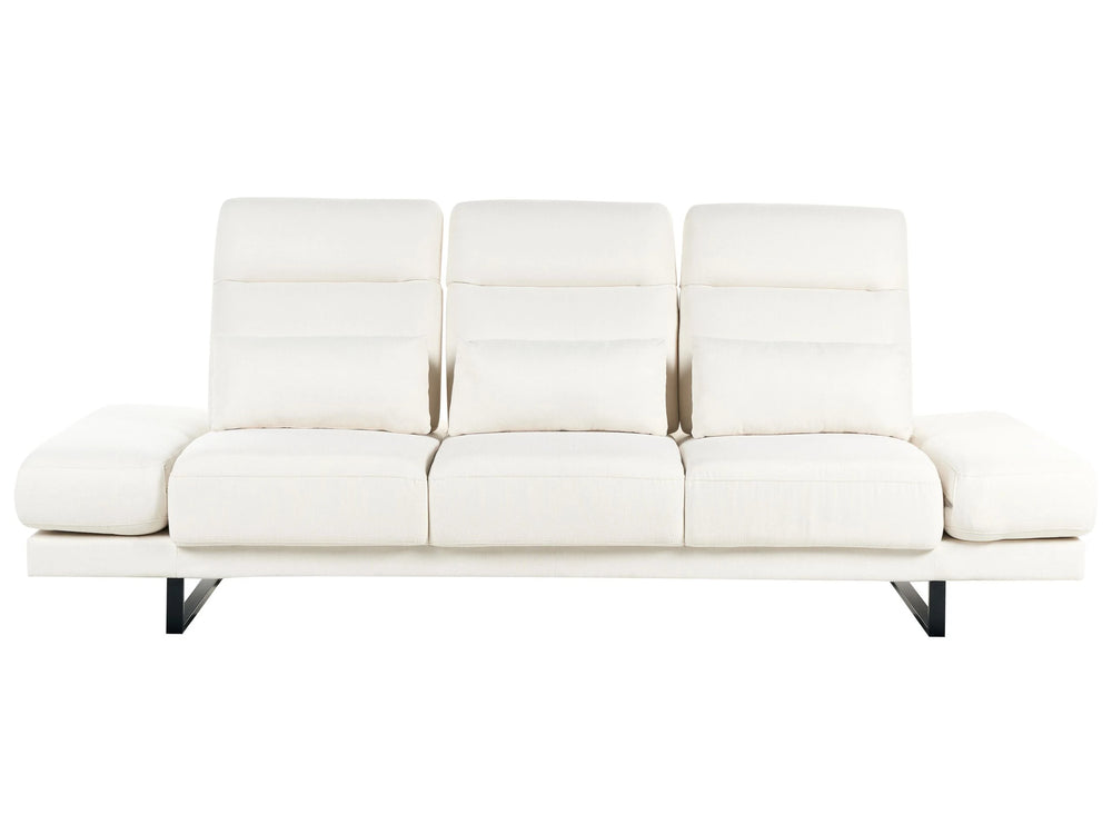 3 Seater Sofa Off White Polyester Upholstery Steel Legs Adjustable Armrests and Backrest Living Room Furniture Beliani