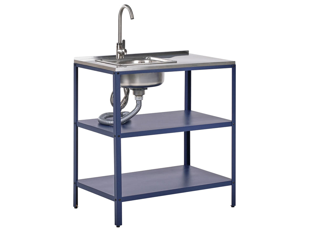 Outdoor Kitchen Island with Sink Blue Stainless Steel 80 x 50 x 92 cm Single Lever Spout 2 Shelves Unit with Top Garden Kitchen Dining Beliani is backordered and will ship as soon as it is back in stock.