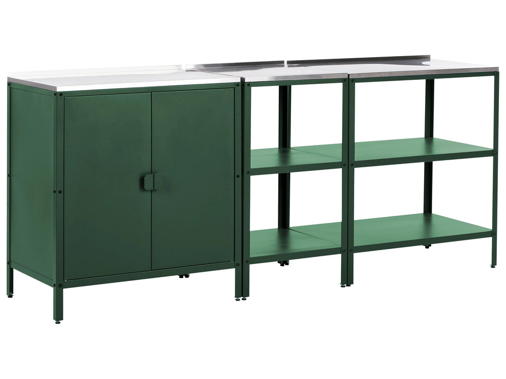 3 Piece Outdoor Kitchen Set Green Stainless Steel 2 Storage Islands Cabinet Outdoor Kitchen Cooking Station Beliani is backordered and will ship as soon as it is back in stock.