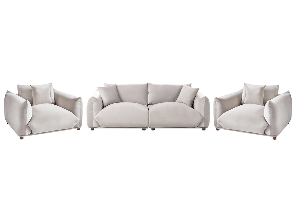 Velvet Sofa Set Taupe Upholstery 5 Seater with Scatter Cushions and Armchairs Living Room Set Beliani is backordered and will ship as soon as it is back in stock.