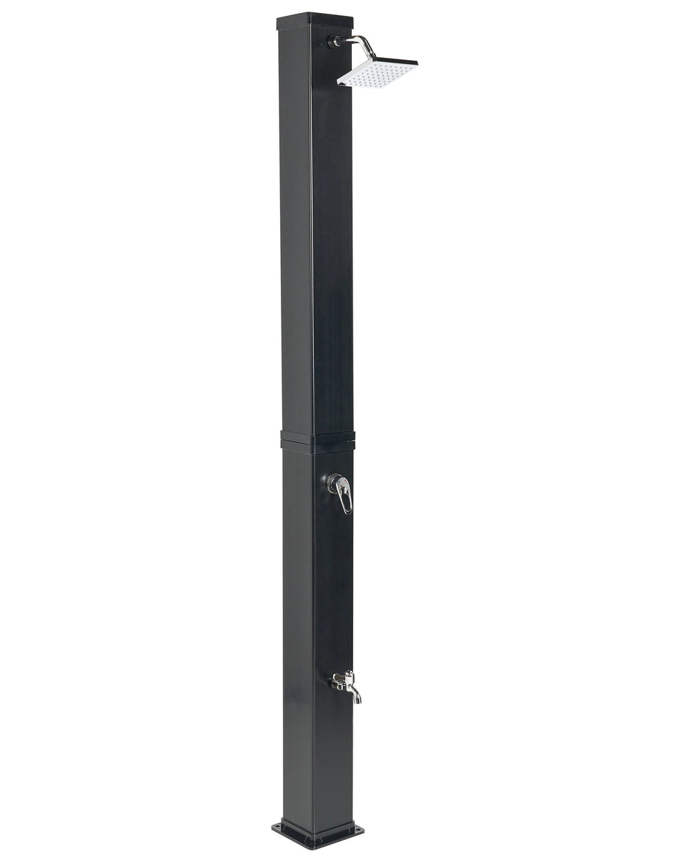 Once the whole tank is filled with water, it takes around 2 to 3 hours to heat up completely. Depending on the weather, the temperature can reach from 30C to 60C., Please note that installation must be in accordance with the manuals and norms of a given country., Please note that the outdoor shower needs to be mounted with 4 anchoring screws included to a hard and flat surface (e.g. cement or tile flooring) with access to the water supply system., To prevent any damage during the winter months, make sure to disassemble and empty the shower, then store it in a dry room. Failing to do so could result in the shower freezing, potentially causing leaks and water damage.