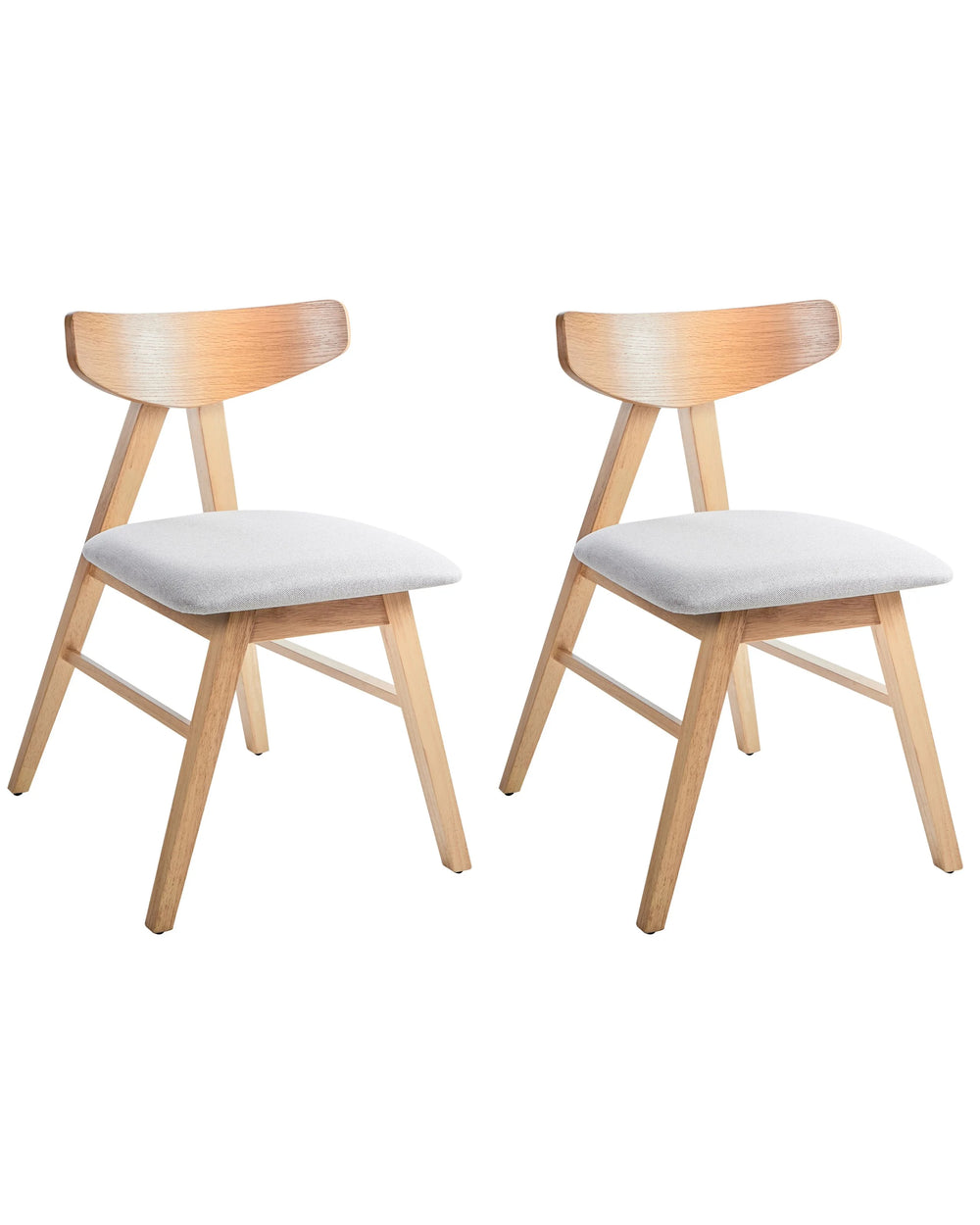 Set of 2 Dining Chairs Light Brown and Light Grey Polyester Rubber Wood Frame Upholstered Seat Dining Room Kitchen Beliani