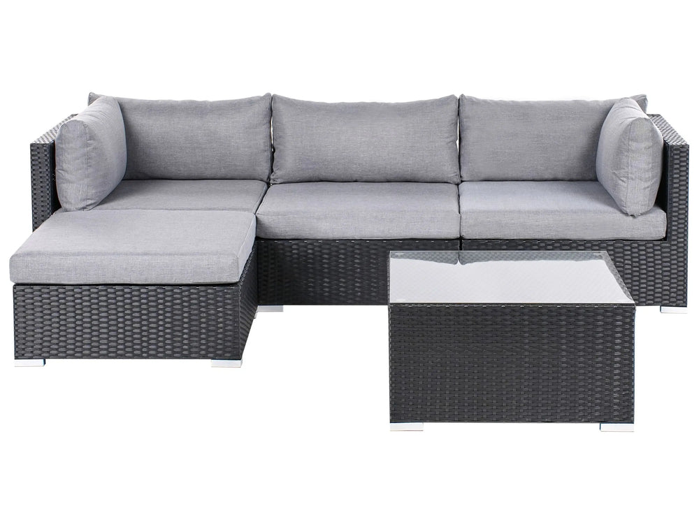 2 Piece Garden Sofa Set Black w/ Grey Cushions 5 Seater Corner Coffee Table Beliani is backordered and will ship as soon as it is back in stock.