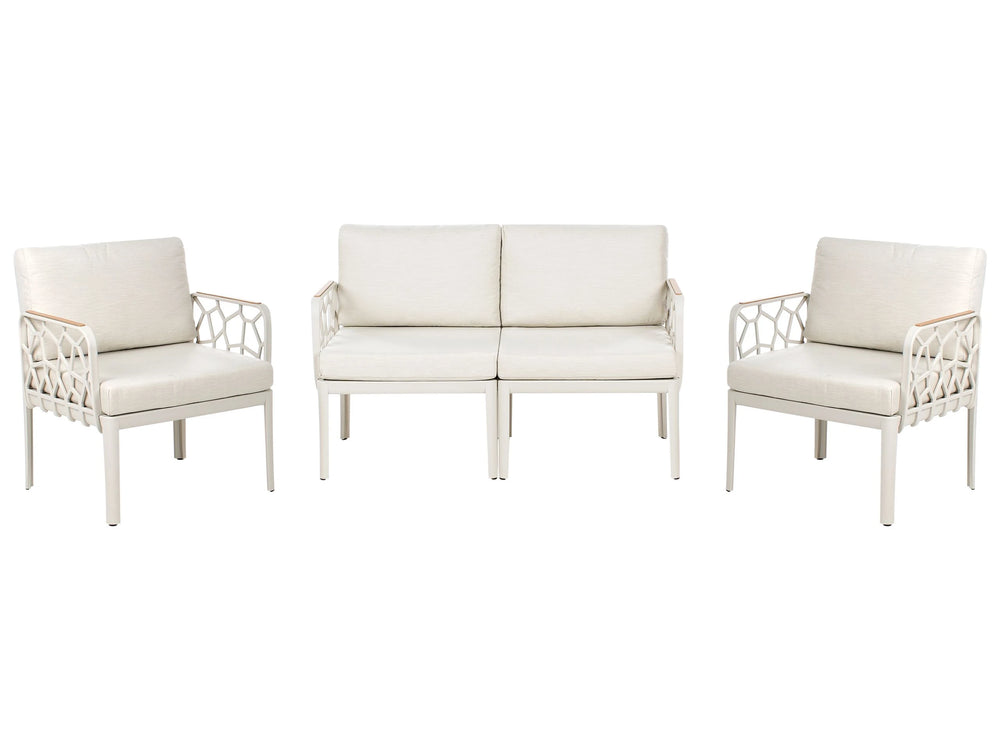 4 Seater Garden Sofa Set Light Beige Synthetic Frame Outdoor Armchairs 2 Seater Sofa with Cushions Modern Style Beliani