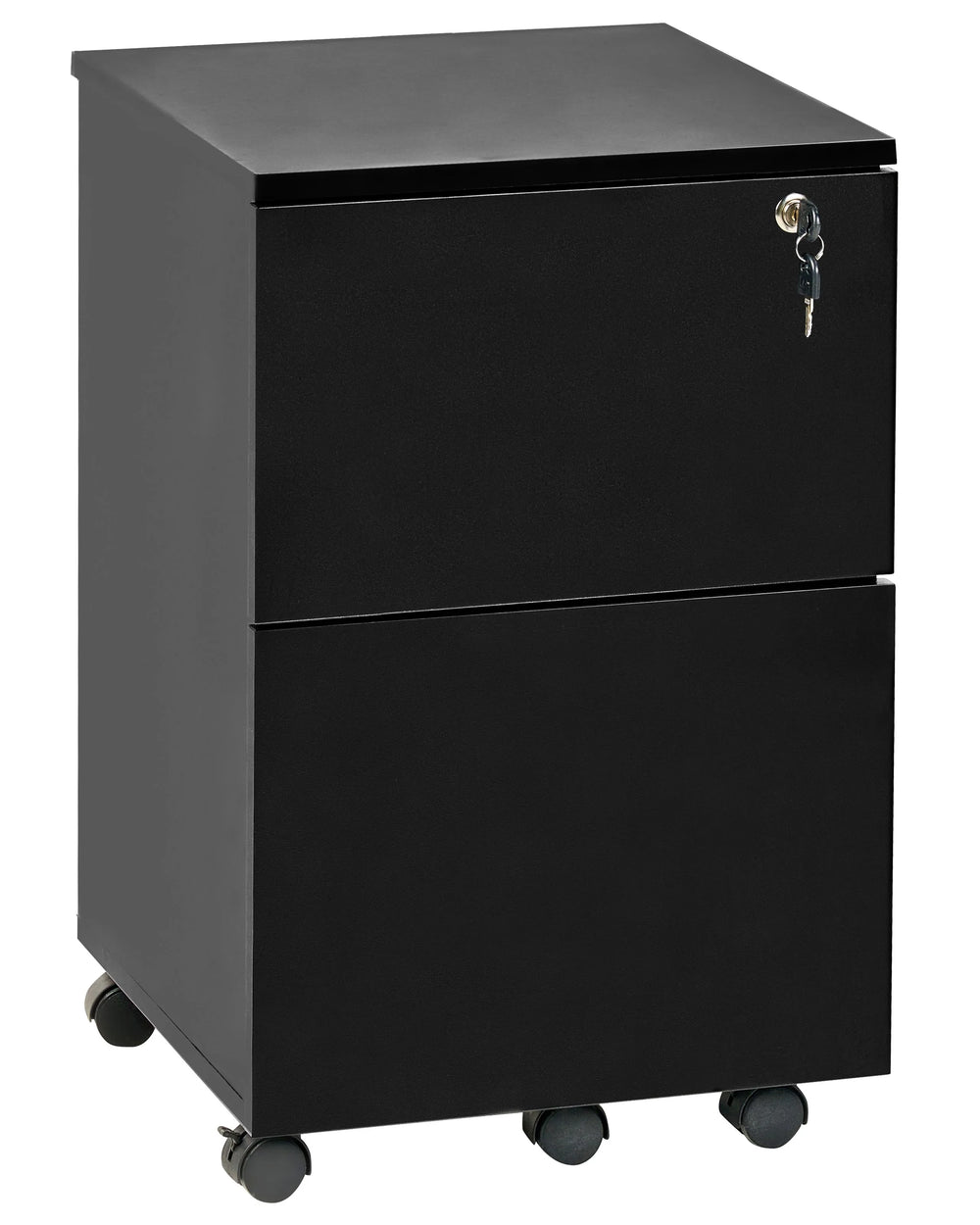 Office Storage Unit Black Engineered Wood with Castors 2 Drawers Key-Locked Industrial Modern Design Beliani