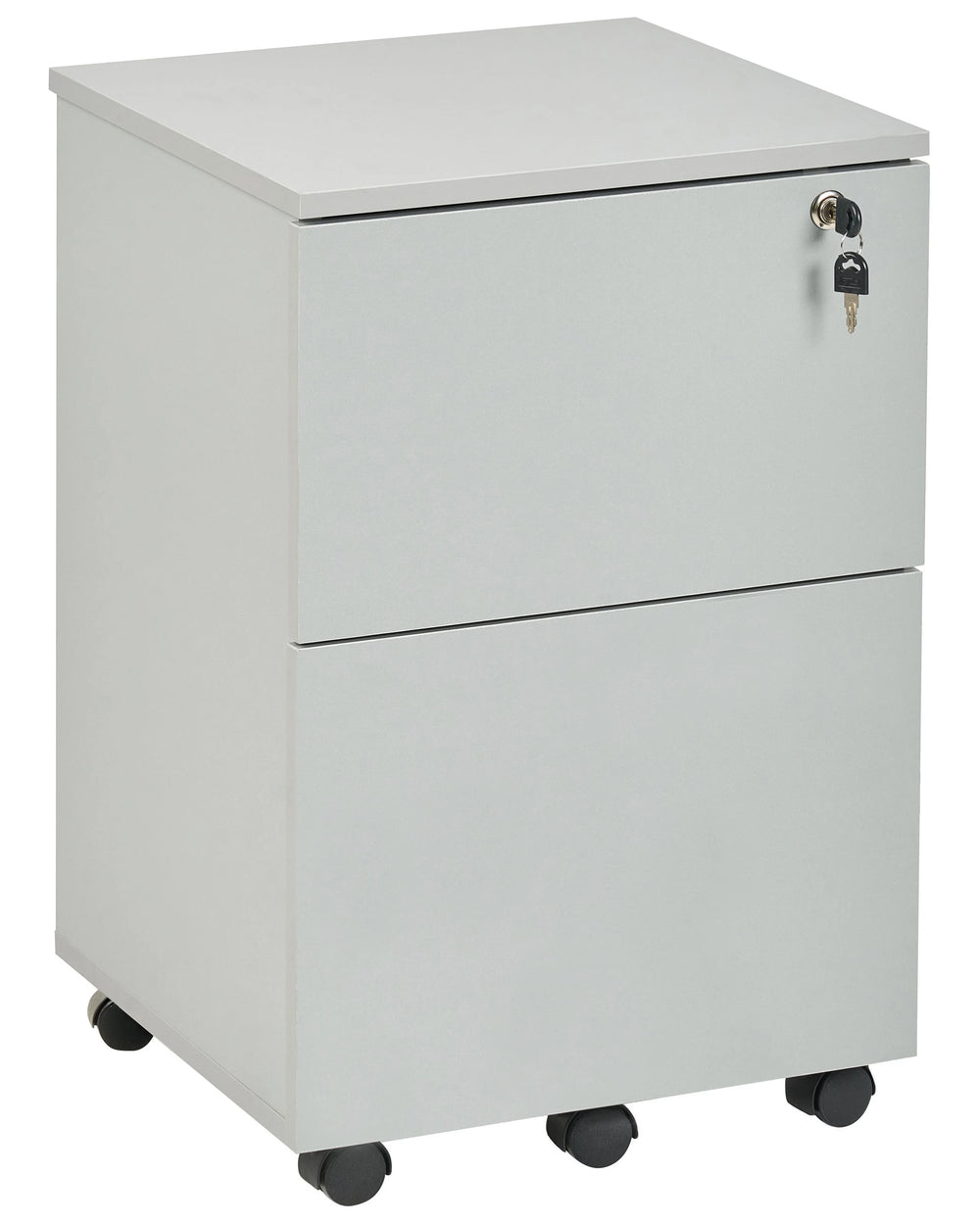 Office Storage Unit Light Grey Engineered Wood with Castors 2 Drawers Key-Locked Industrial Modern Design Beliani