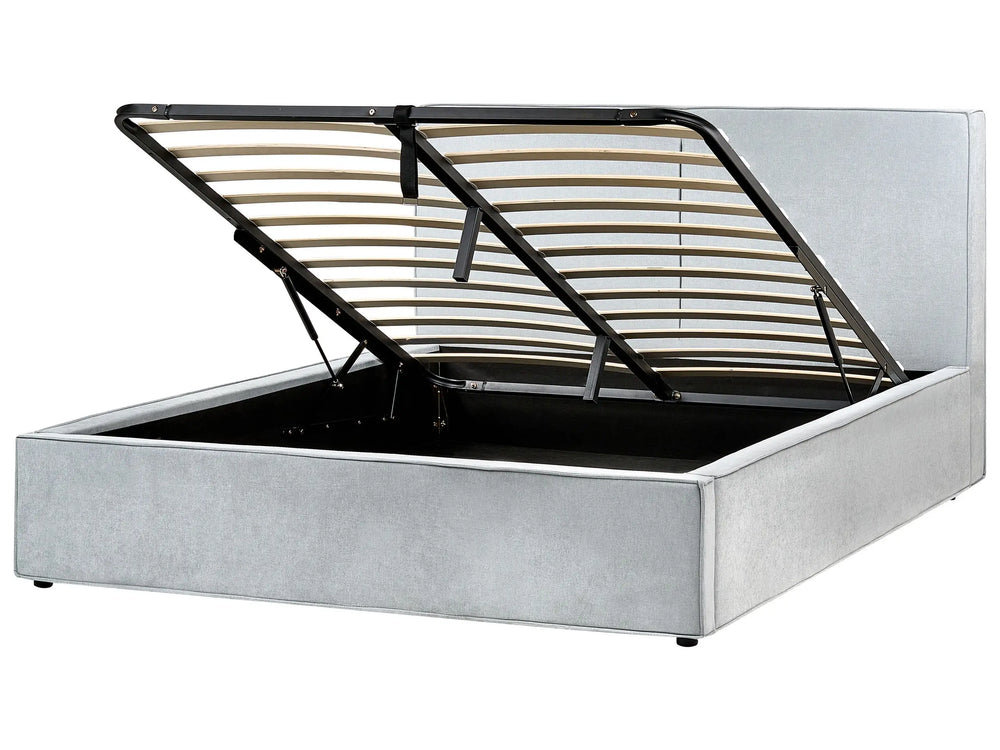 EU Super King Size Panel Bed 6ft Light Blue Fabric Upholstery Storage Ottoman Slatted Frame Contemporary Modern Bedroom Beliani
