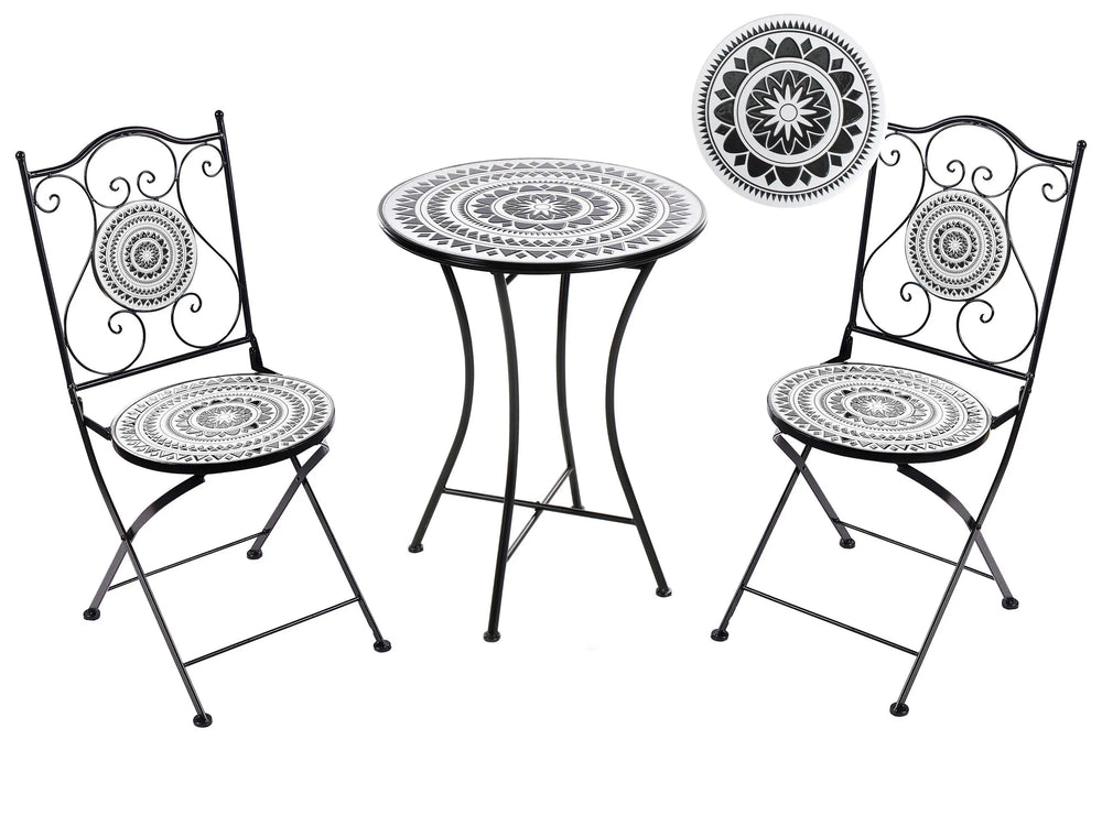 Bistro Set Black and White Ceramic Tiles Iron Folding Outdoor Blacony Beliani is backordered and will ship as soon as it is back in stock.