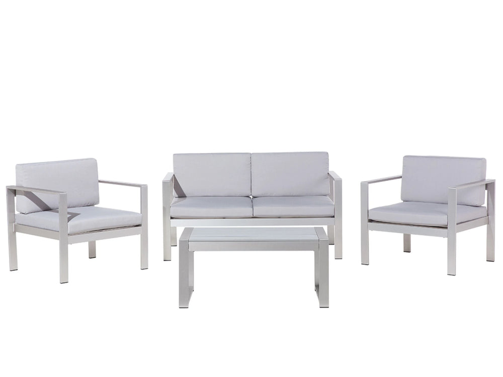 4 Piece Garden Set Grey Plastic Wood Sofa with 2 Chairs and Coffee Table Beliani is backordered and will ship as soon as it is back in stock.