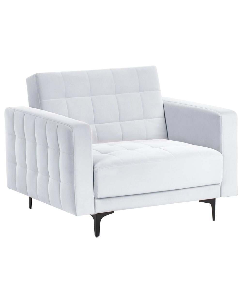Armchair Light Grey Velvet Tufted Fabric Modern Living Room Reclining Chair Black Legs Track Arm Beliani is backordered and will ship as soon as it is back in stock.
