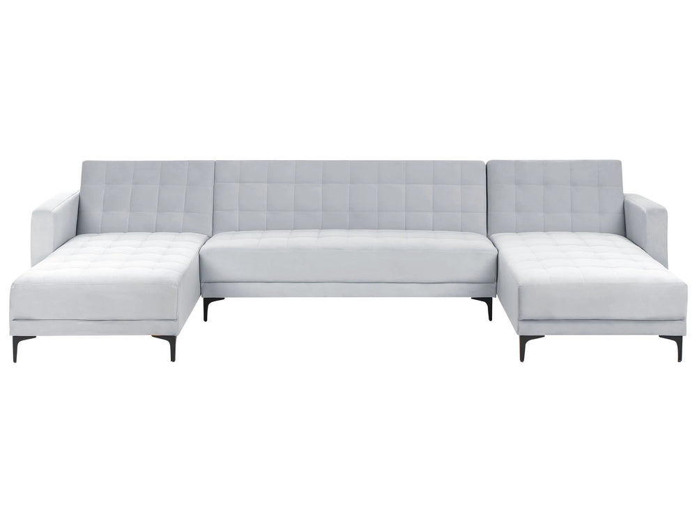 Corner Sofa Bed Light Grey Velvet Tufted Fabric Modern U-Shaped Modular 5 Seater with Chaise Lounges Beliani is backordered and will ship as soon as it is back in stock.