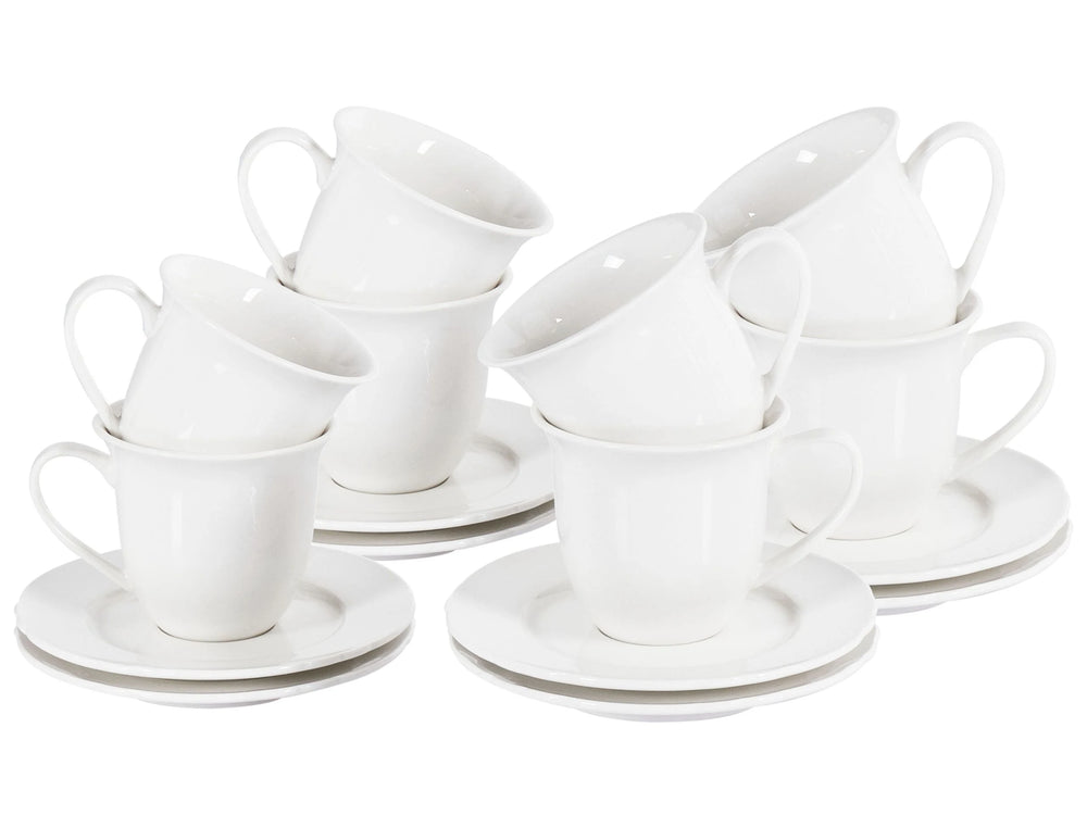 Set of 8 Cups with Saucers White Porcelain Glossy Finish Service for 8 People Tea Coffee Kitchen Dining Room Beliani