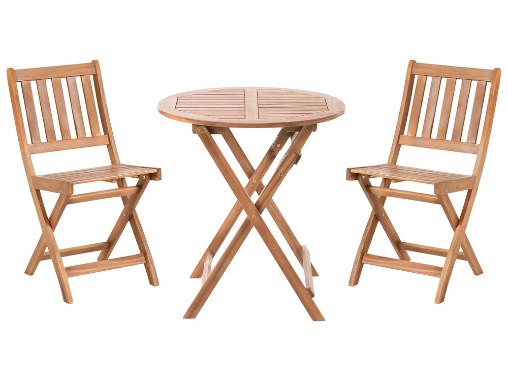 3 Piece Bistro Set Brown Solid Certified Acacia 2 Chairs and Tea Table Folding Slatted Design Beliani