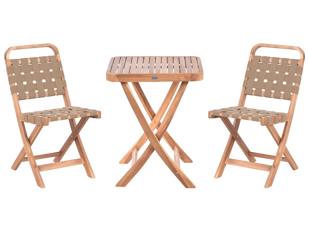 3 Piece Bistro Set Brown Solid Certified Acacia 2 Chairs and Tea Table Folding Slatted Design Beliani