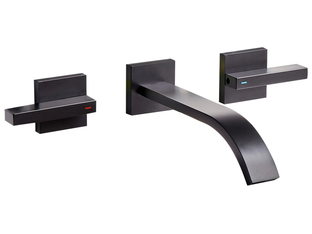 Wall Mounted Basin Mixer Tap Black Brass 3 Tap Hole Dual Lever Beliani