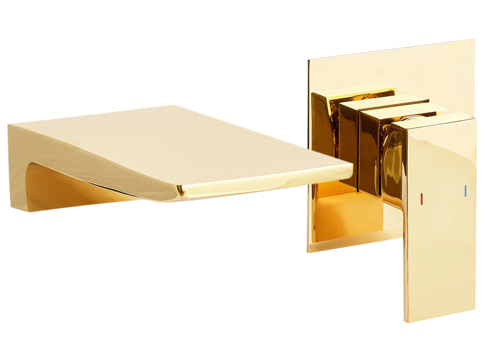 Wall Mounted Basin Mixer Waterfall Tap Gold Brass Single Lever Beliani