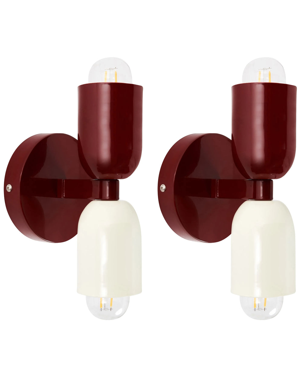 Set of 2 Wall Lamps Red Metal Shades Two-Light Up-Down Wall Mounted Lamps Scones Beliani