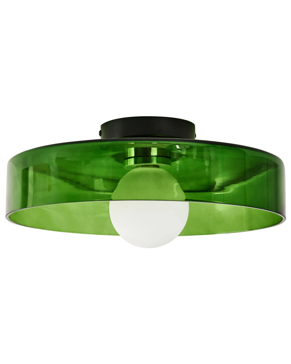Ceiling Lamp Green Glass Shade Flush Mount Light Fitting for Low Ceilings Beliani