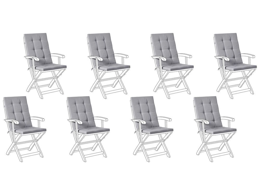 Set of 8 Outdoor Seat/Back Cushions Light Grey Polyester Tufted Thick Cushion for a Garden Chair Beliani