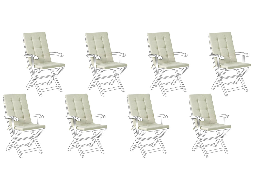 Set of 8 Outdoor Seat/Back Cushions Light Green Polyester Tufted Thick Cushion for a Garden Chair Beliani is backordered and will ship as soon as it is back in stock.