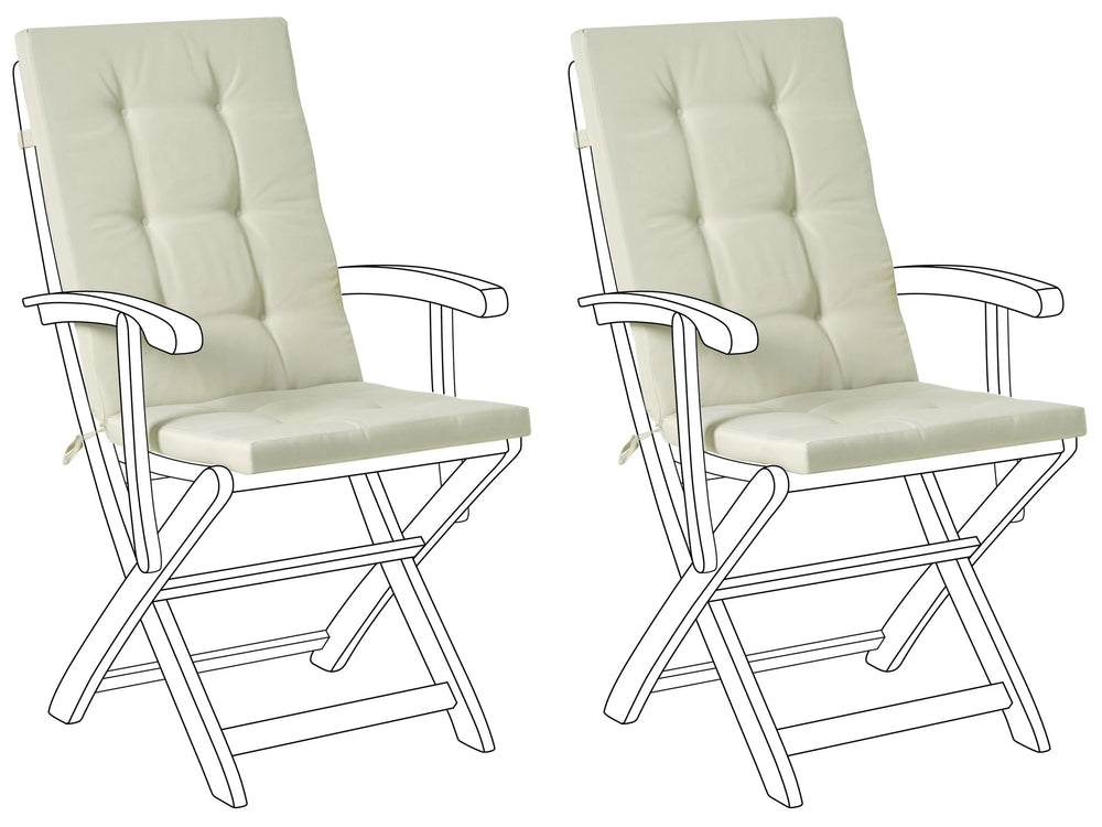 Set of 2 Outdoor Seat/Back Cushions Light Green Polyester Tufted Thick Cushion for a Garden Chair Beliani is backordered and will ship as soon as it is back in stock.