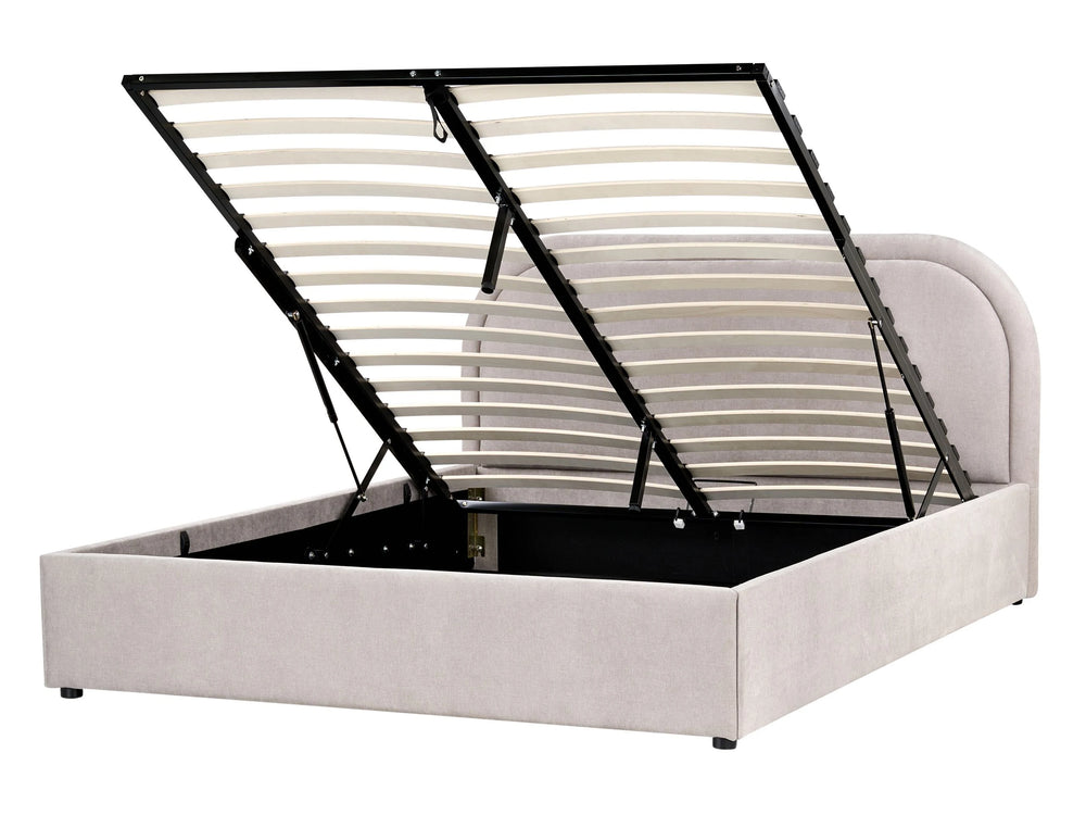 EU Double Size Bed Beige Fabric 4ft6 Upholstered Frame Headrest with Storage Beliani