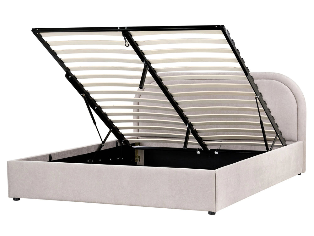 EU King Size Bed Beige Fabric 5ft3 Upholstered Frame Headrest with Storage Beliani