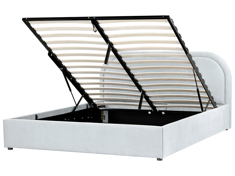 EU King Size Bed Light Blue Fabric 5ft3 Upholstered Frame Headrest with Storage Beliani