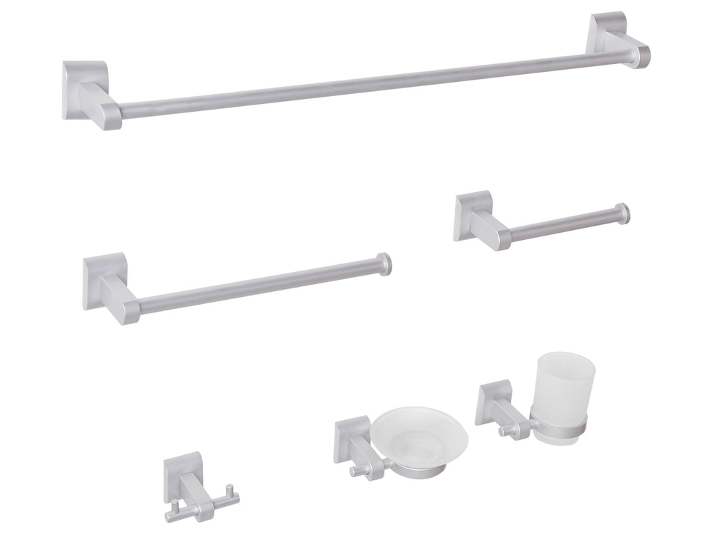6-Piece Bathroom Hardware Set Silver Aluminium Glass Tumbler and Soap Dish Included Bathroom Accessories Modern Style Chic Beliani