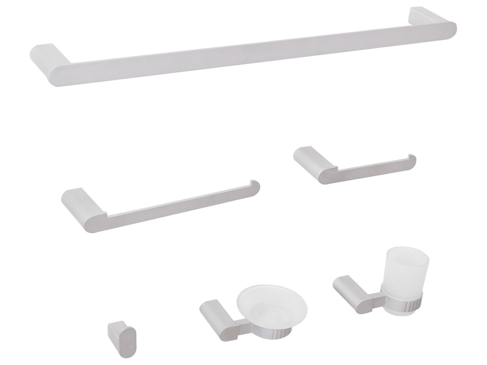 6-Piece Bathroom Hardware Set Silver Aluminium Glass Tumbler and Soap Dish Included Bathroom Accessories Minimalist Chic Beliani