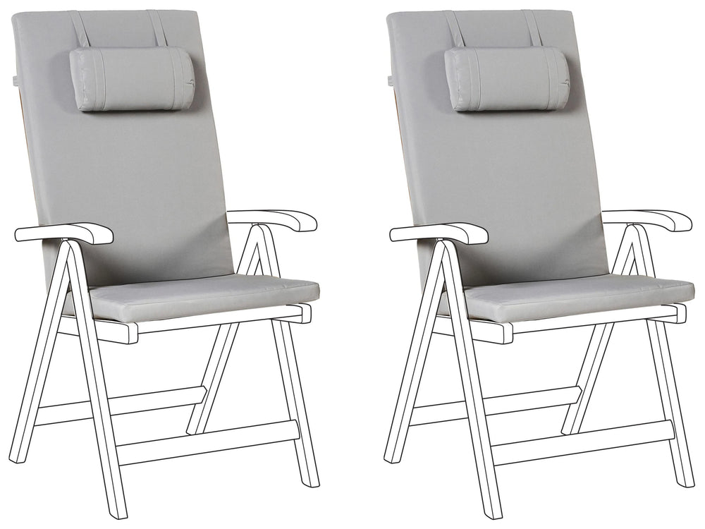 Set of 2 Garden Chair Cushions Light Grey Polyester Seat Backrest Pad Modern Design Outdoor Pad Beliani