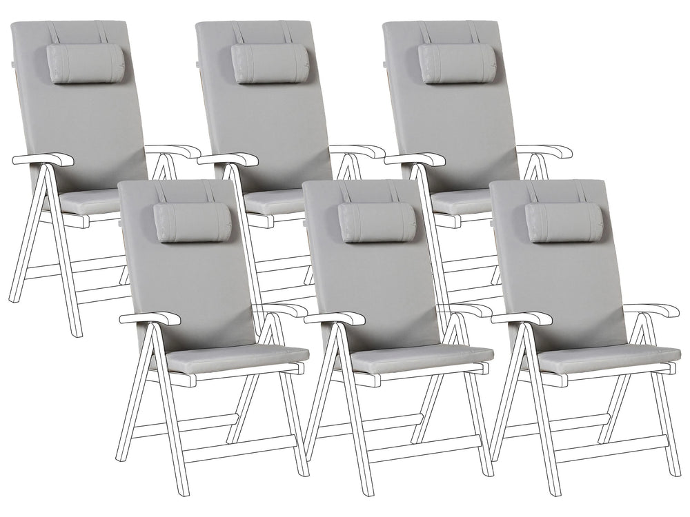 Set of 6 Garden Chair Cushions Light Grey Polyester Seat Backrest Pad Modern Design Outdoor Pad Beliani