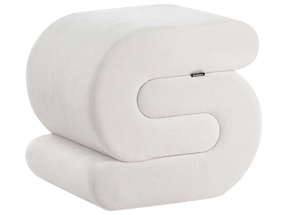 Pouffe Off White Chenille Fabric Upholstered S-Shape Living Room Footstool Beliani