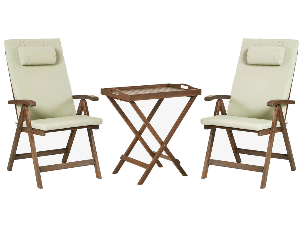 Garden Bistro Set Solid Acacia Wood with Green Cushions Table 2 Chairs Adjustable Backrest Folding Rustic Style Balcony Furniture Beliani