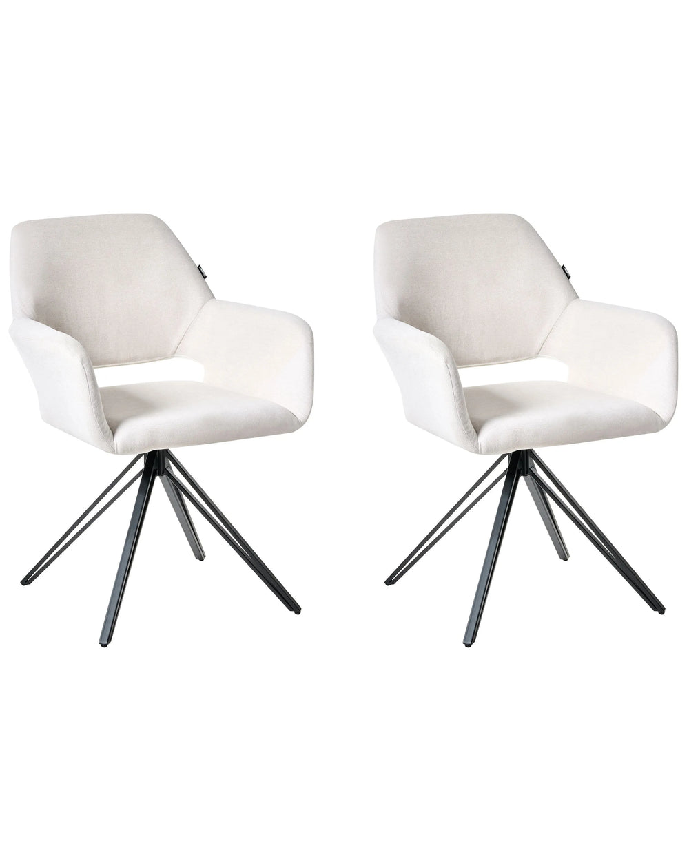 Set of 2 Dining Chairs Off-White Polyester Upholstery Iron Black Legs Modern Style Dining Room Furniture Beliani