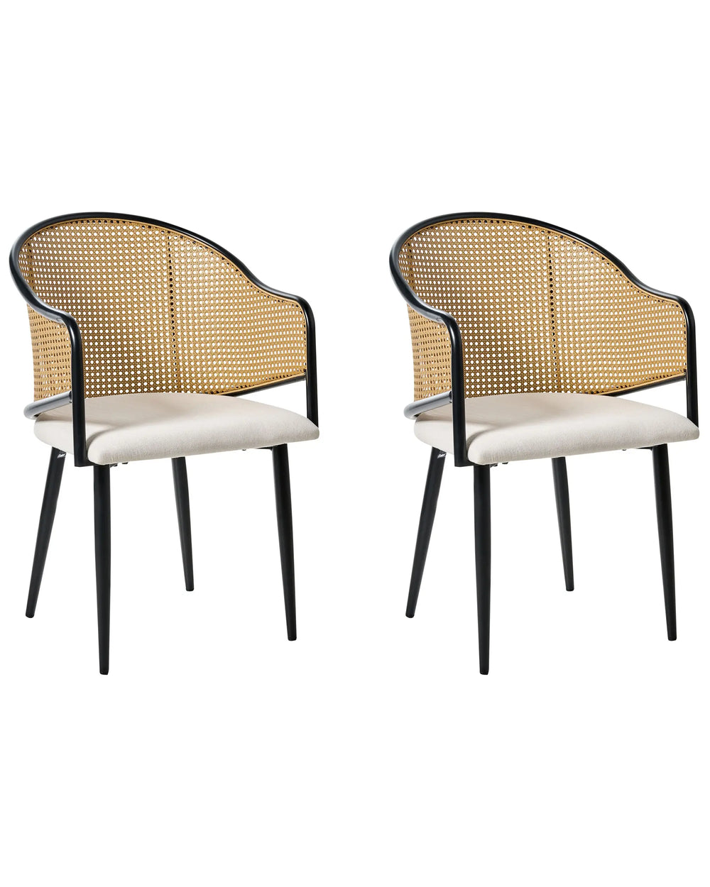 Set of 2 Dining Chairs Black Iron Frame and Legs Polyester Upholstered Seat Rounded Backrest Retro Style Dining Room Furniture Beliani is backordered and will ship as soon as it is back in stock.