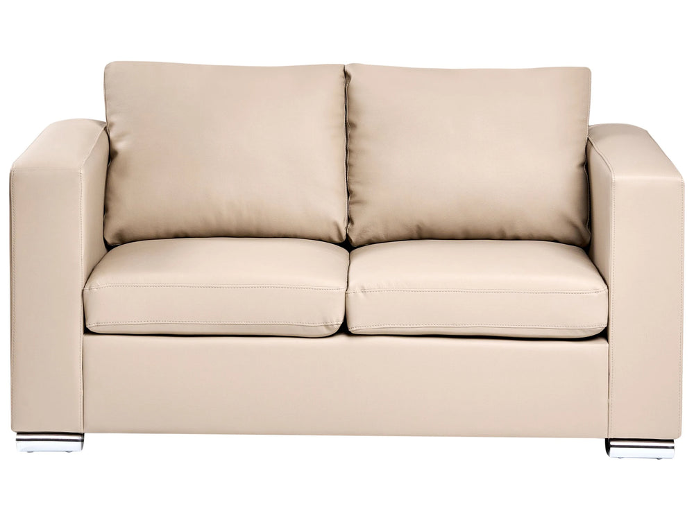 2 Seater Sofa Loveseat Beige Leather Upholstery Chromed Legs Retro Design Beliani