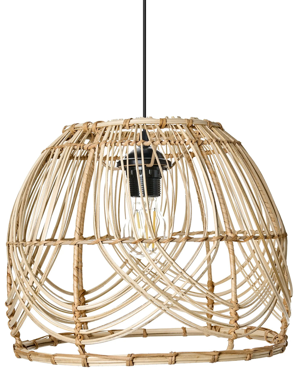 Pendant Lamp Natural Rattan Shade Iron Frame Woven Handmade Lighting Boho-Inspired Beliani