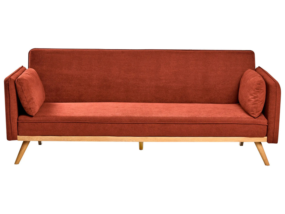 Sofa Bed Red Fabric Upholstery Click-Clack Sleeper Mechanism Minimalistic Style Beliani is backordered and will ship as soon as it is back in stock.