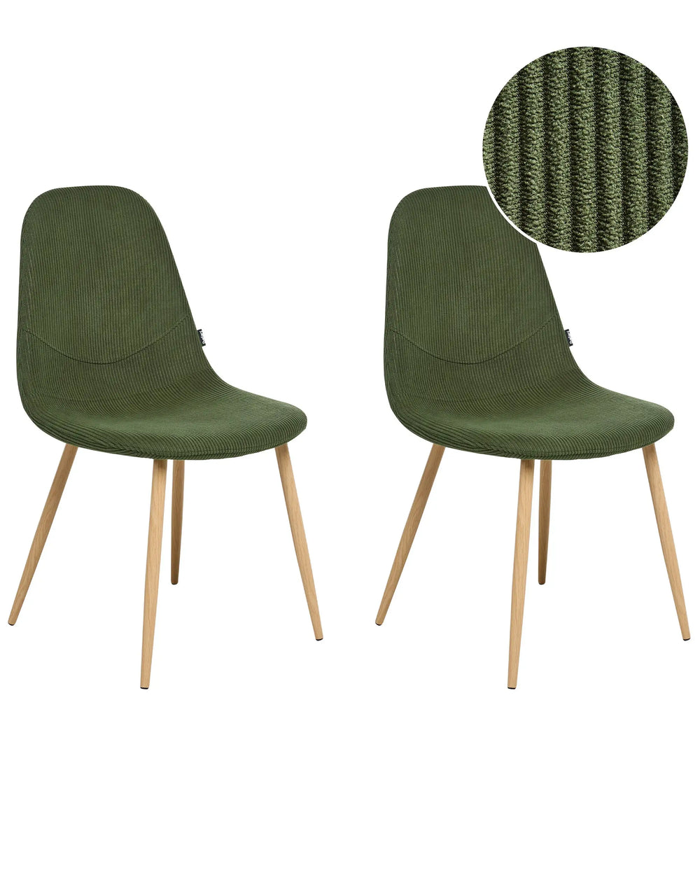 Set of 2 Dining Chairs Green Fabric Frame Corduroy Seat Armless Modern Design Beliani